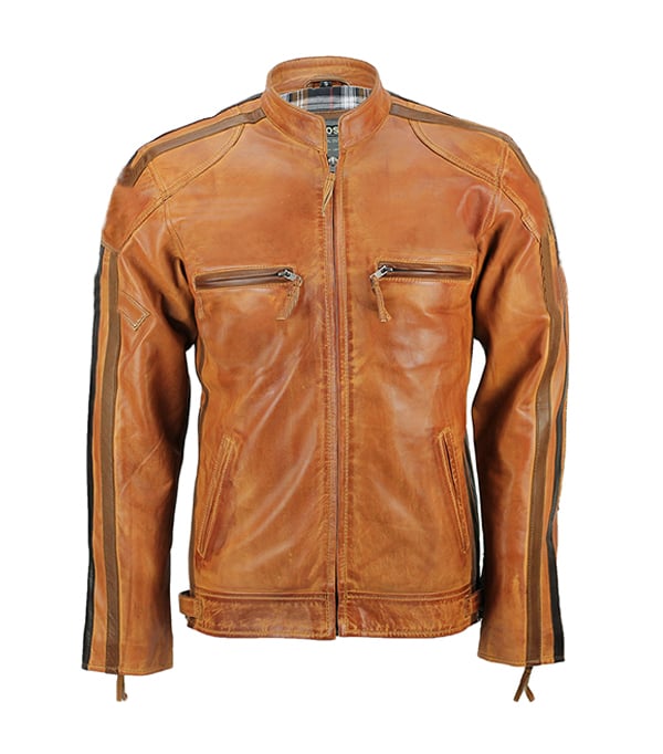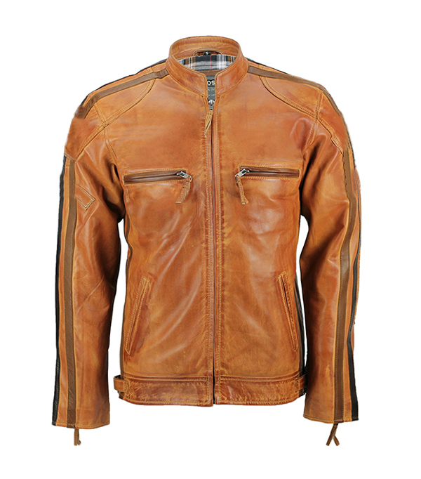 Mens Leather Jacket Camel Brown Dark Contrast Striped Leather Jacket