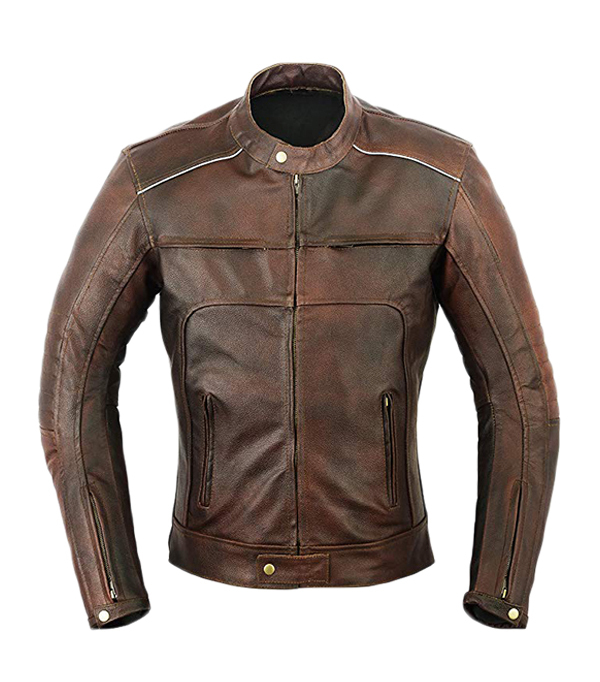Mens Leather Jacket Brown Slim Fit Double Stitched Design Vintage Leather Jacket