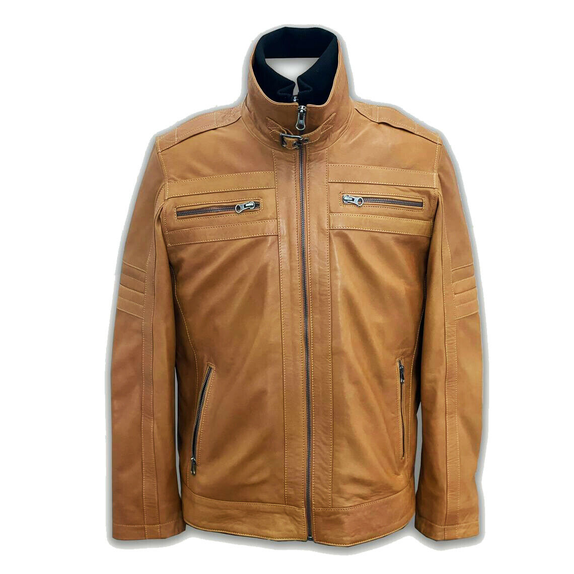 Brown Removable Collar Real Genuine Leather Jacket