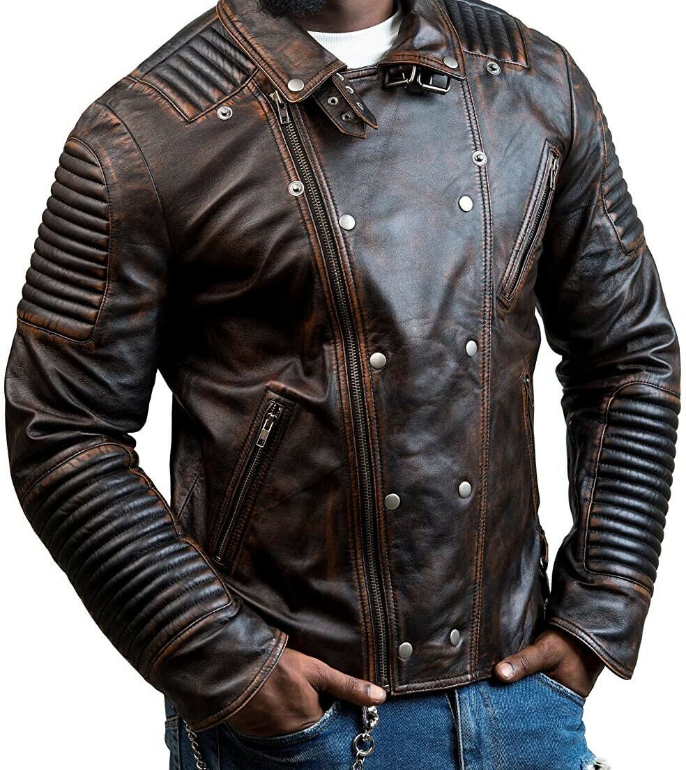 Men's Genuine Leather Distressed Brown Biker Motorcycle Jacket