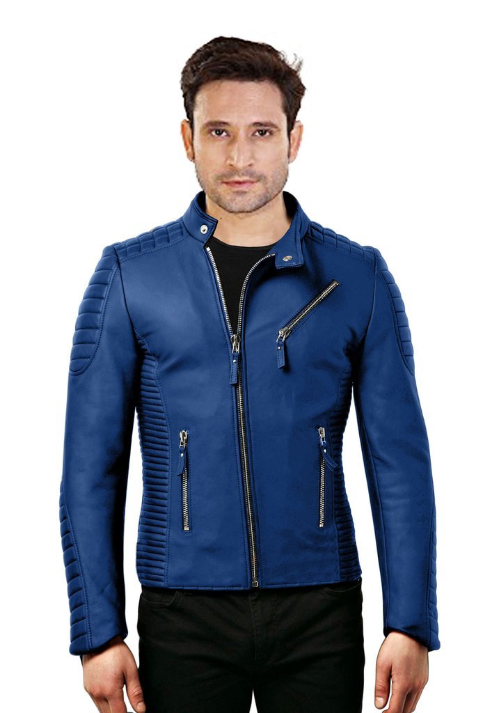 New Men's Genuine Lambskin Leather Jacket Blue Biker Motorcycle jacket