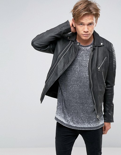 New Men's Genuine Lambskin Leather Jacket Black Biker Motorcycle jacket