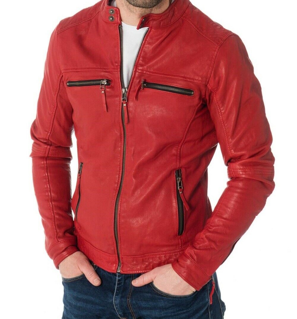 Men's Stylish Genuine Lambskin Bomber Biker Moto Leather Jacket