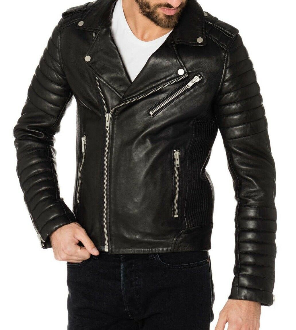 SkinOutfit Men's Stylish Genuine Lambskin Bomber Biker Moto Leather Jacket