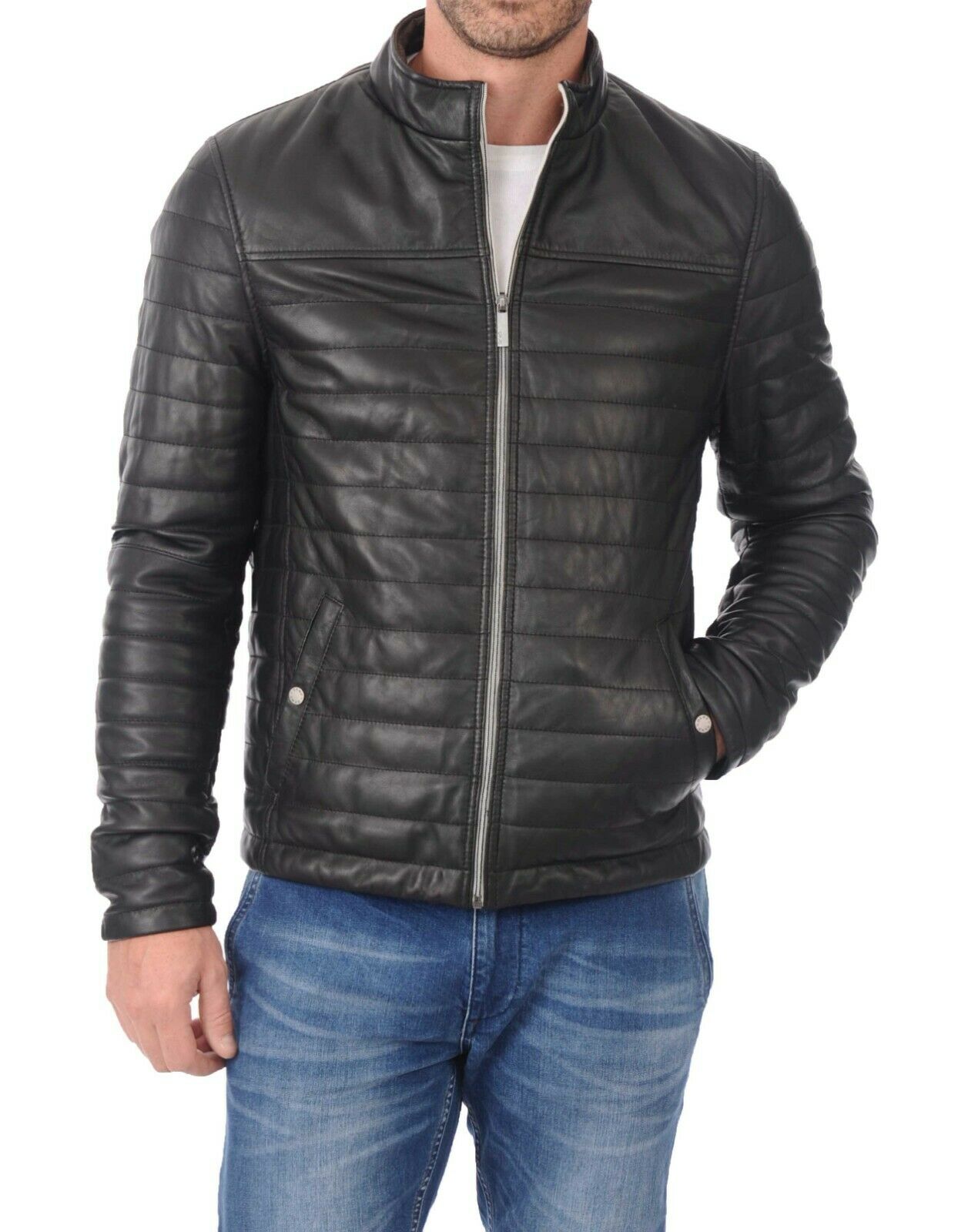 Mens Leather Jacket Stylish Genuine Lambskin Motorcycle Bomber Biker
