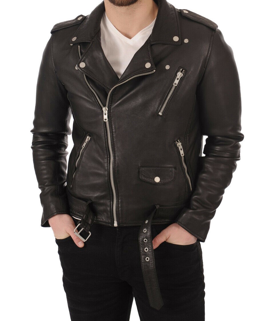 SkinOutfit Men's Stylish Genuine Lambskin Bomber Biker Moto Leather Jacket