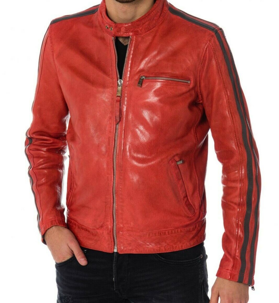 Men's Stylish Genuine Lambskin Bomber Biker Moto Leather Jacket