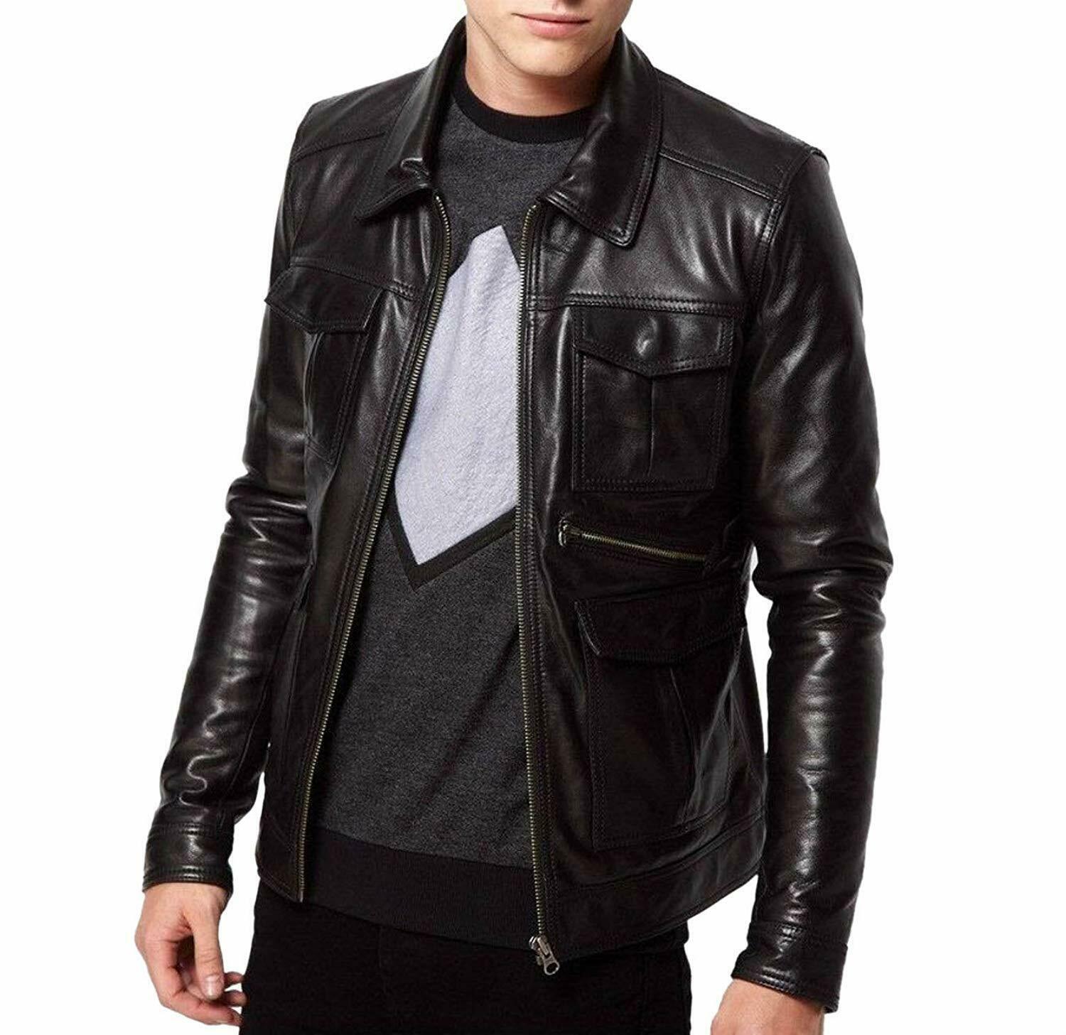 Men's Leather Jacket Motorcycle Black Slim fit Biker Genuine lambskin jacket