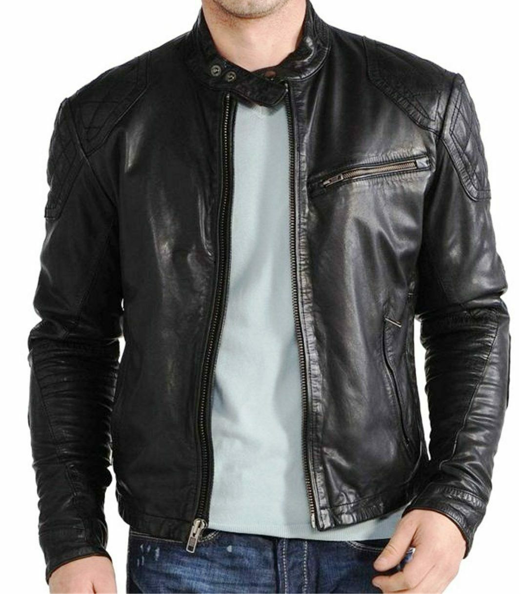 Men Black Leather Jacket Biker Slim-fit Soft Lambskin Jacket