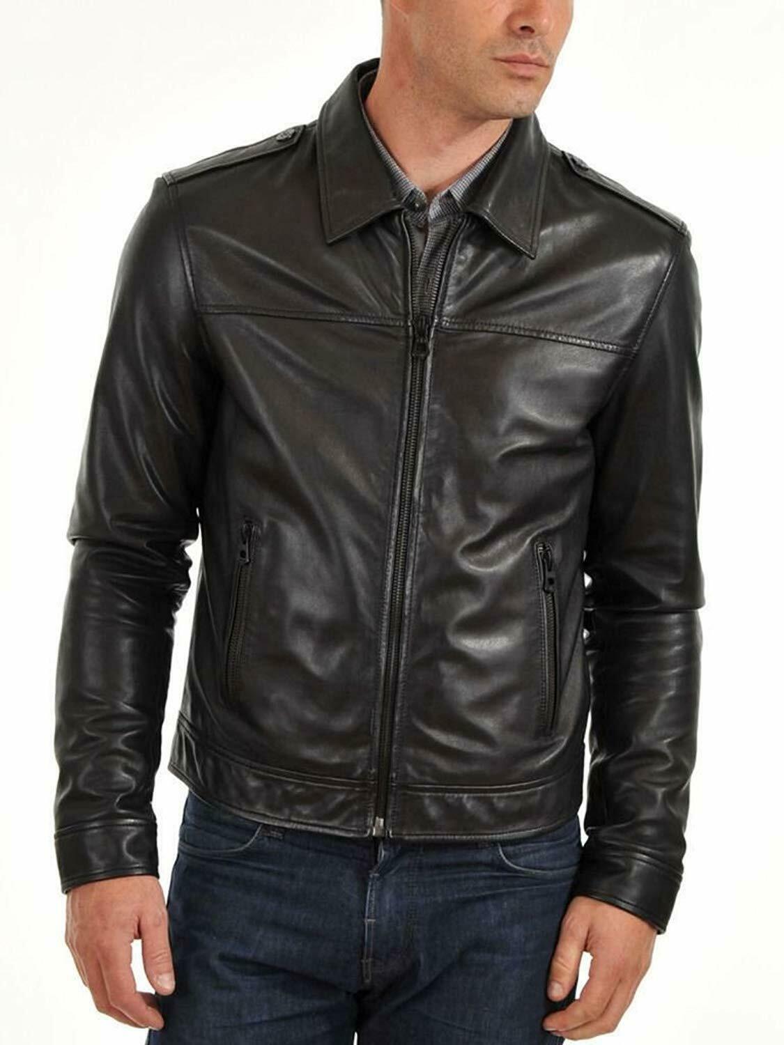 Men's Leather Jacket Motorcycle Black Slim fit Biker Genuine lambskin jacket