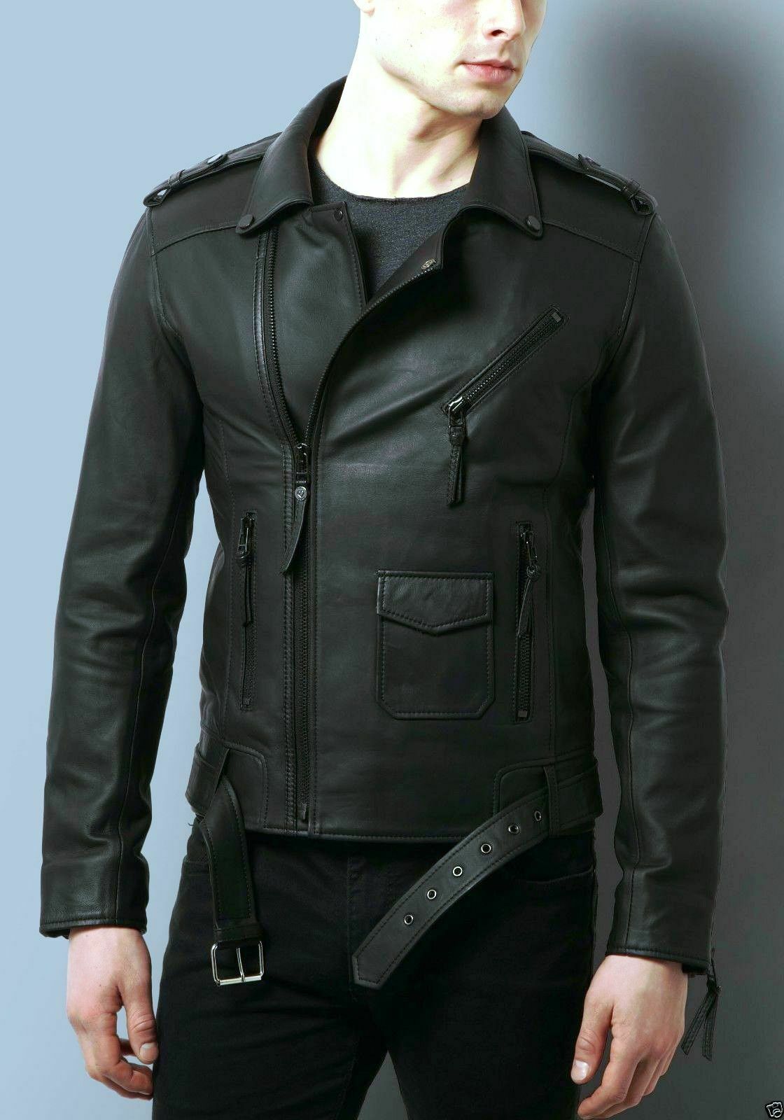 Men's Black Biker Racer Party Soft Lambskin Jacket