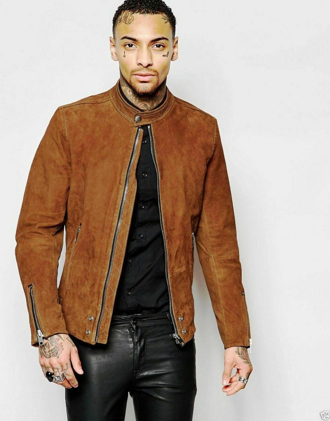 Men's Brown Suede Biker Racer Motercycle Soft Lambskin Jacket