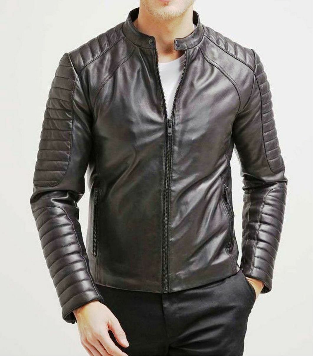 Men's Black Biker Racer Motercycle Slim-Fit Soft Lambskin Jacket