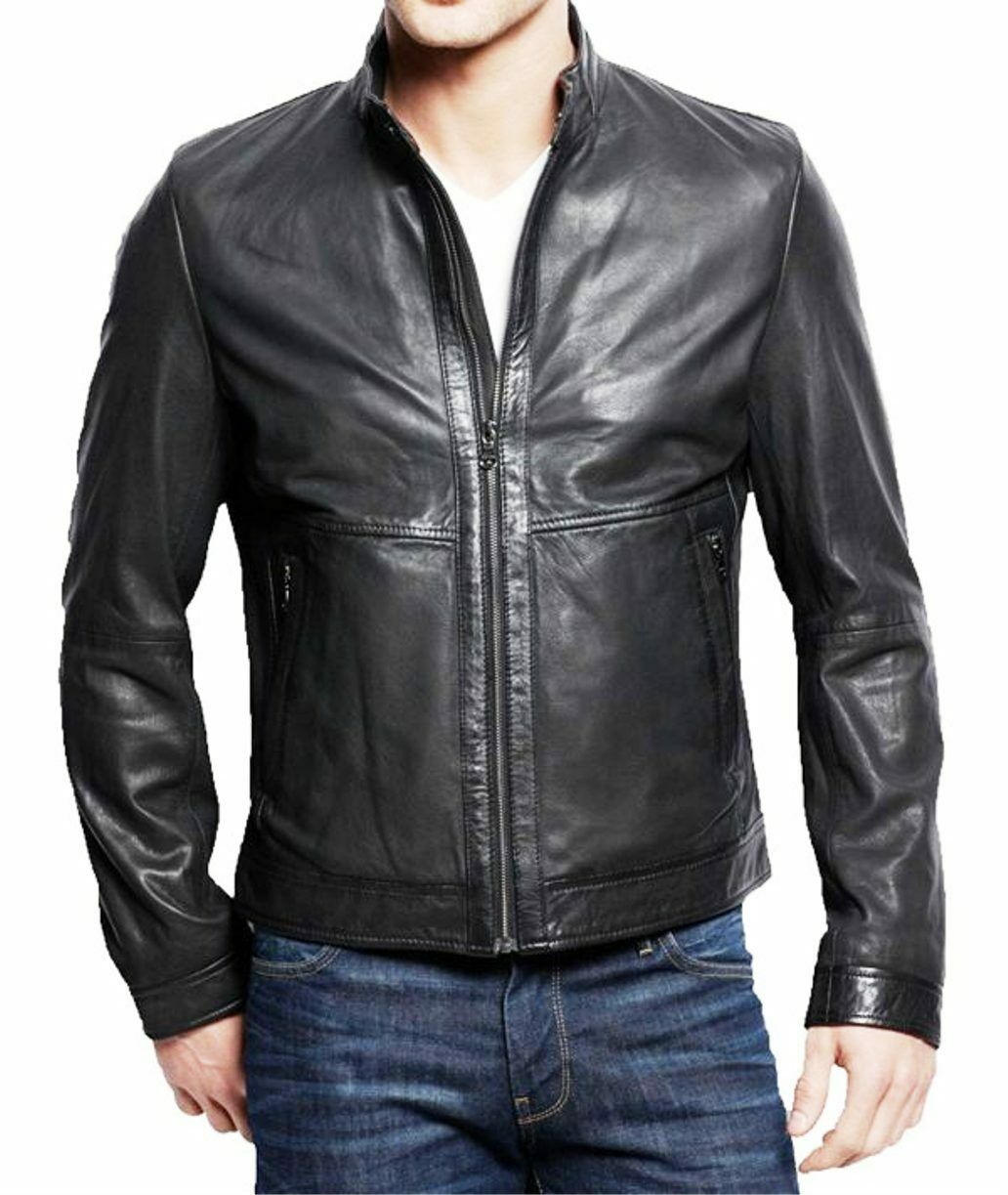 Men Black Leather Jacket Biker Racer Slim-fit Soft Lambskin
