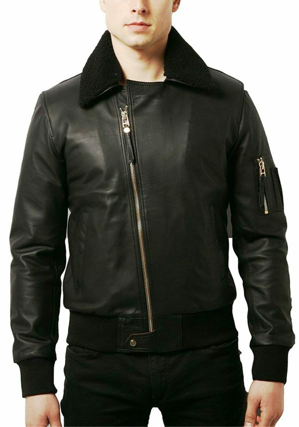 Men Black Leather Jacket Biker Motorcycle Cafe Racer Soft Lambskin Zipper Short
