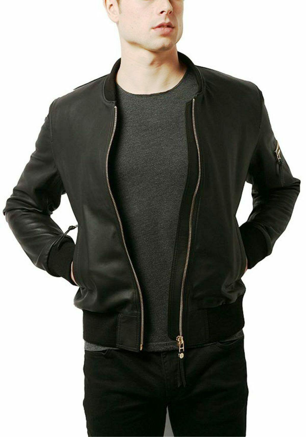 Men Black Biker Leather Jacket Soft Lambskin Motorcycle Cafe Racer