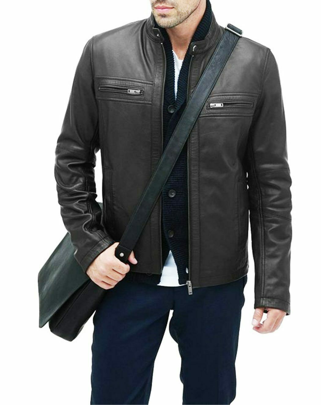 Men Black Leather Jacket Biker Motorcycle Cafe Racer Soft Lambskin Zipper Short