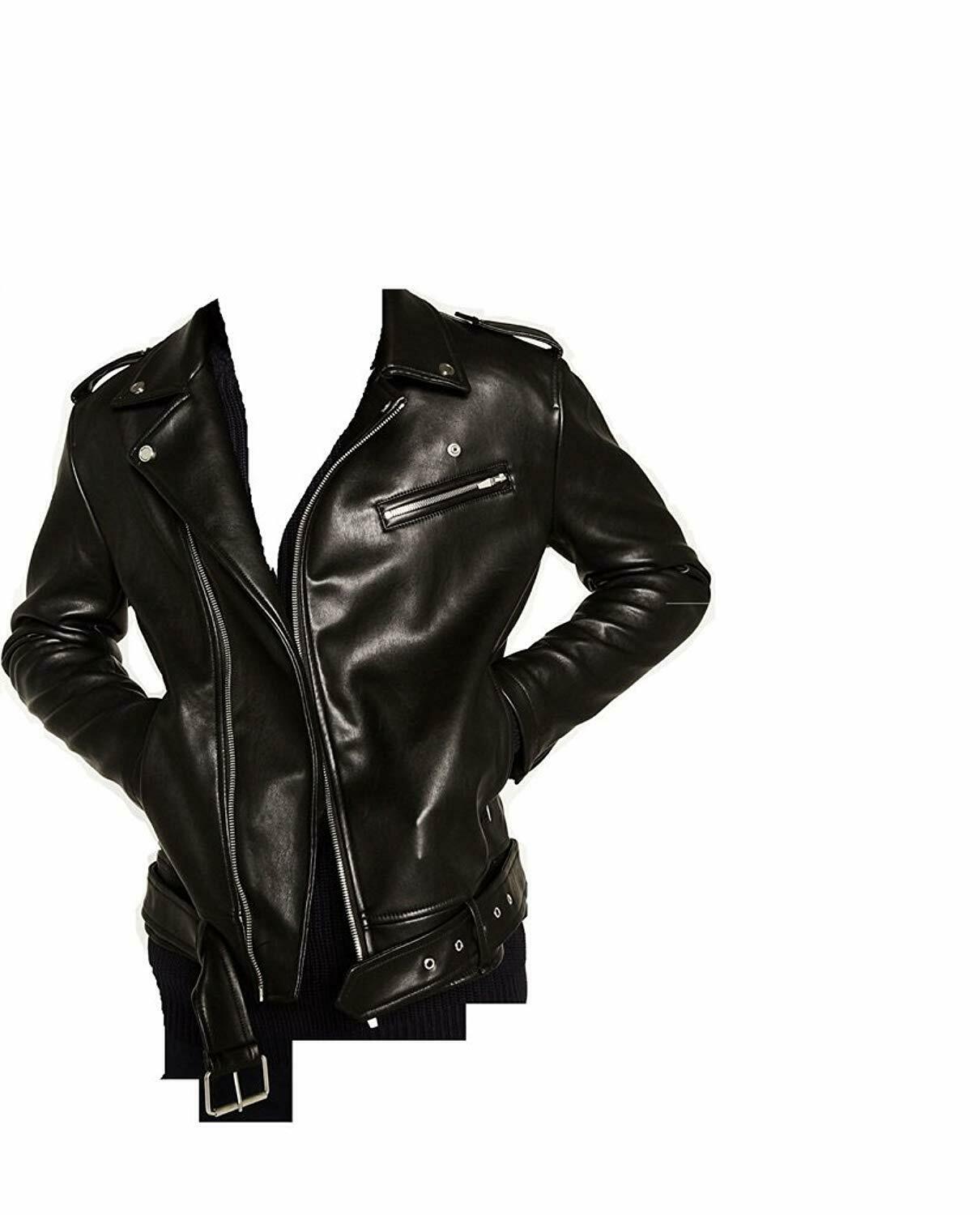 Men Black Biker Leather Jacket Soft Lambskin Motorcycle Cafe Racer