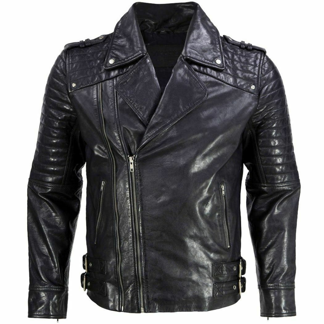 Men Black Leather Jacket Biker Motorcycle Cafe Racer Soft Lambskin