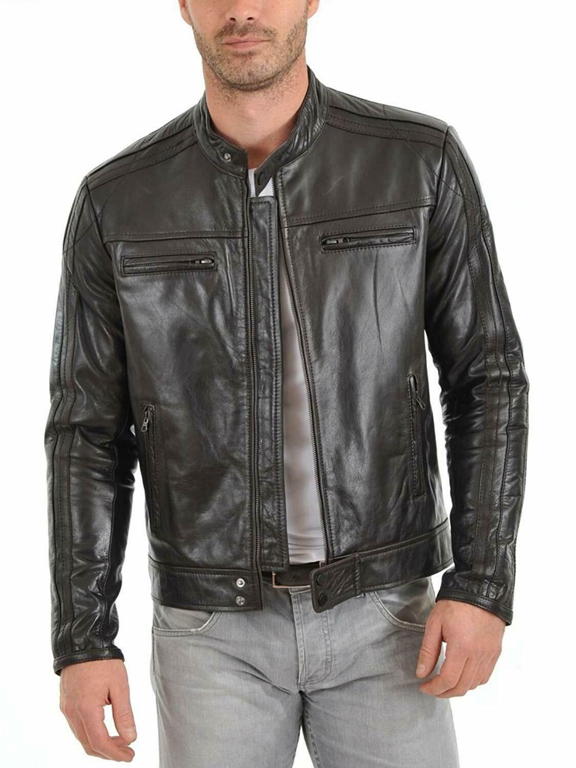 Men's Leather Jacket Motorcycle Black Slim fit Biker Genuine lambskin jacket