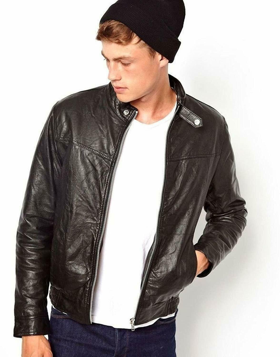 Men Black Leather Jacket Biker Motorcycle Racer Cafe Soft Lambskin Zipper Short