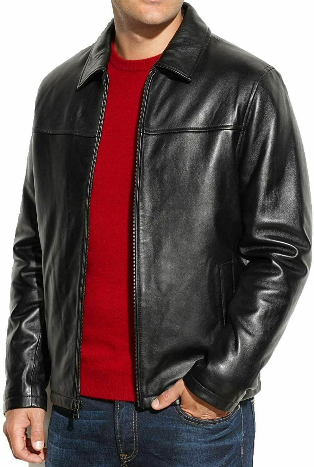 New Men Authentic Lambskin Leather Jacket Biker Black Outwear Luxury Fashion
