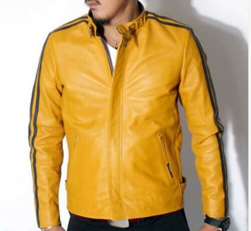 New Men Jacket Original Yellow Lambskin Leather Designer Party