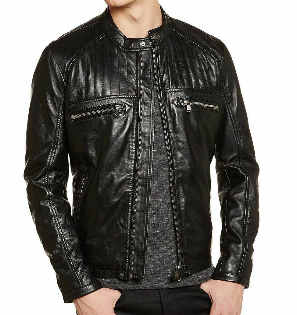 NEW Men Genuine Lambskin Real Leather Jacket Motorcycle Stylish Zipper Coat