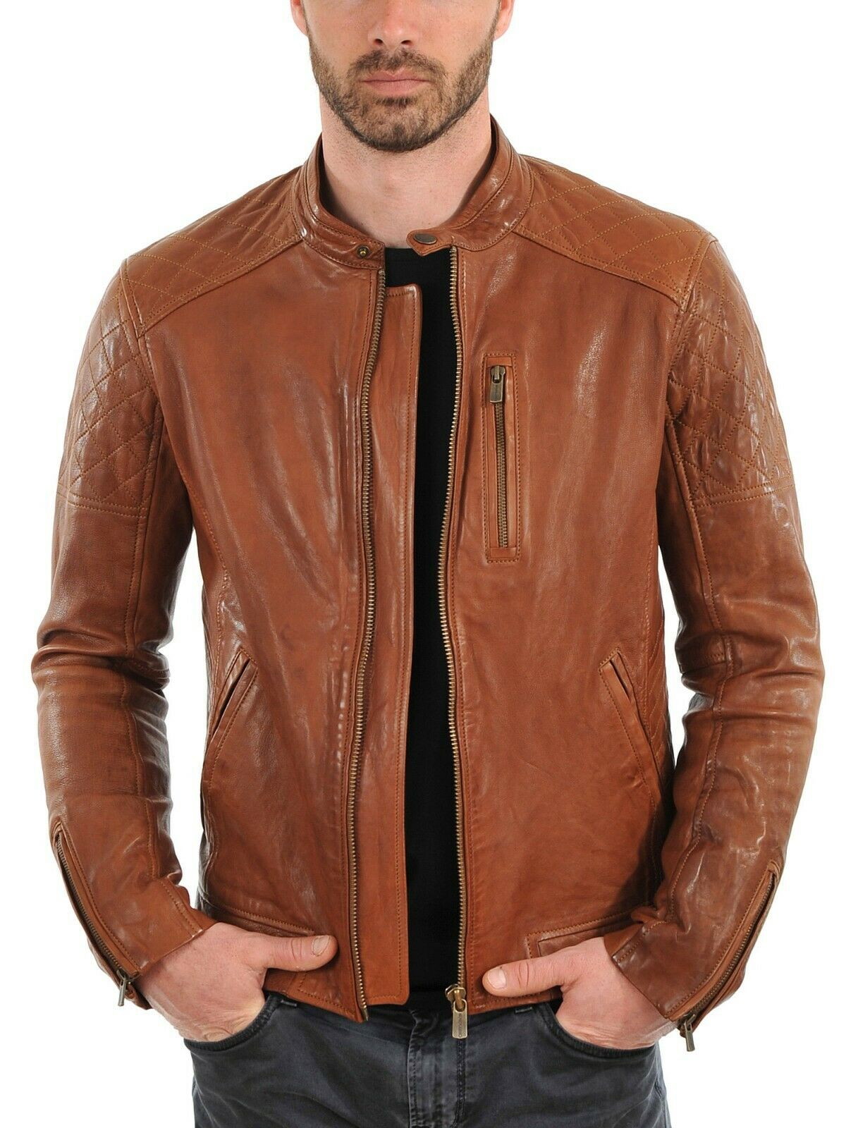 New Men's Leather Jacket Genuine Lambskin Motorcycle Slim Fit Biker Jacket