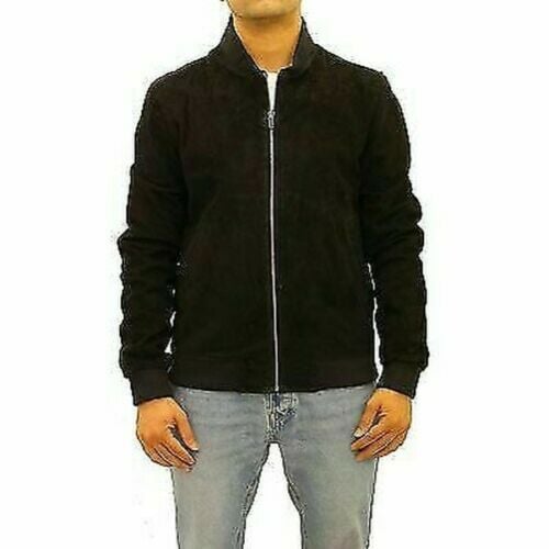 Men's Real Suede Genuine Leather Jacket Biker Motorcycle Black Stylish Soft Coat