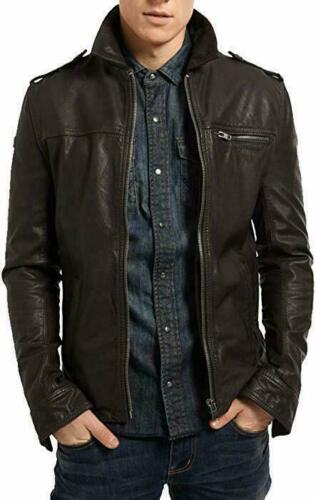 Men Genuine Lambskin High Quality Leather Black Stylish Biker Jacket Coat