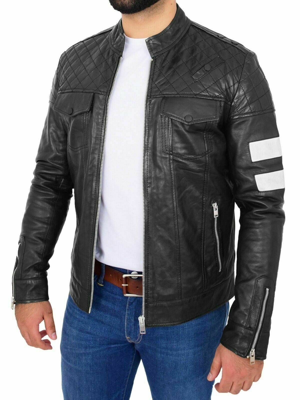 Urban men's lamb leather 100% leather jacket biker motorcycle black quilted fashionable