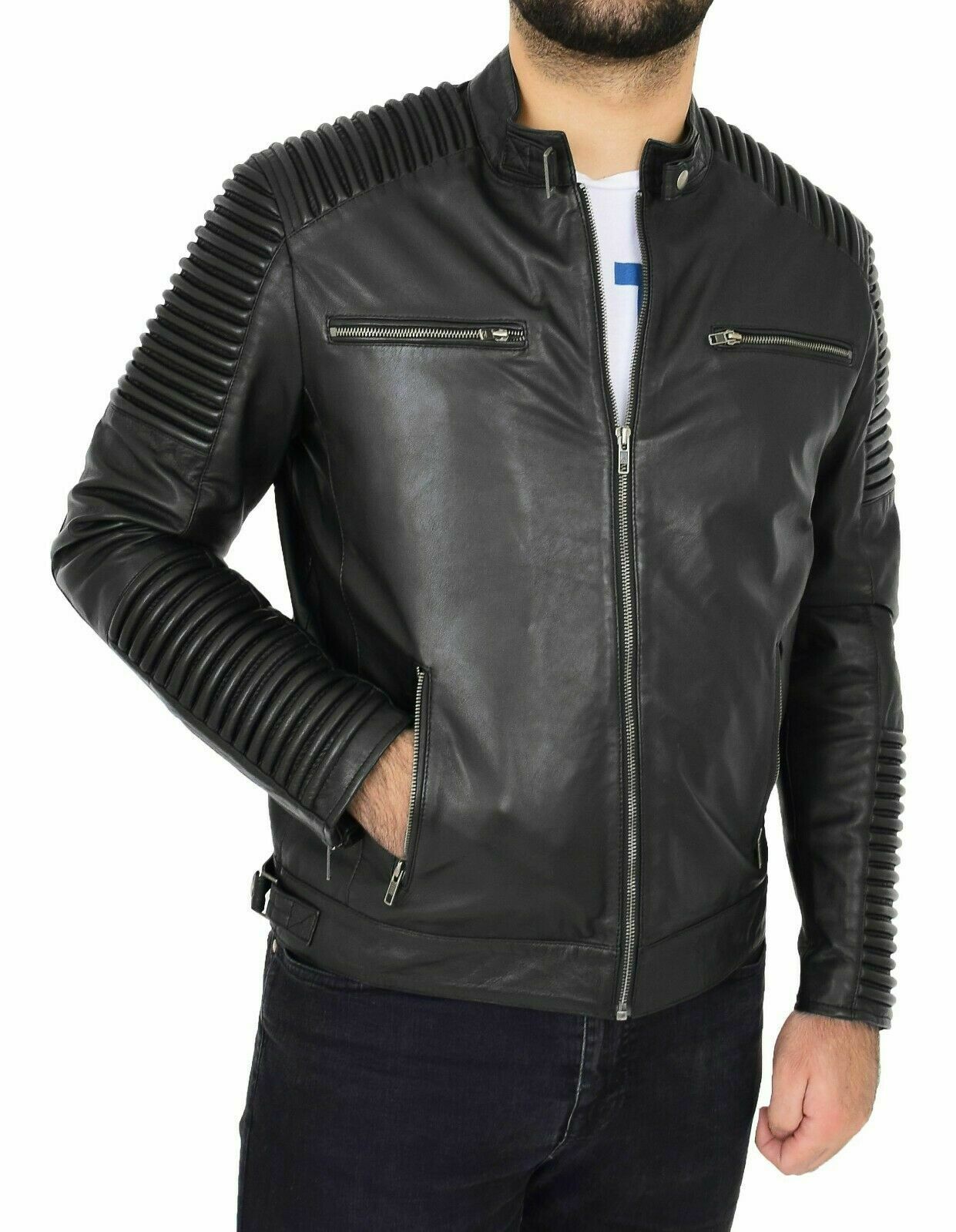 Urban Men's Lambskin Handmade Leather Jacket Biker Motorcycle Stylish Black