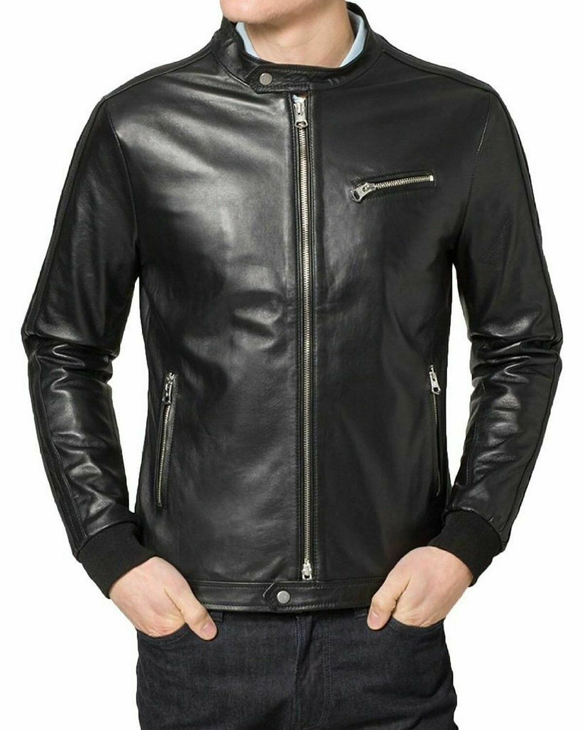 Neu Herren Echt Lammleder Echtleder Biker Schwarze Jacke Slim Fit Motorradhelm