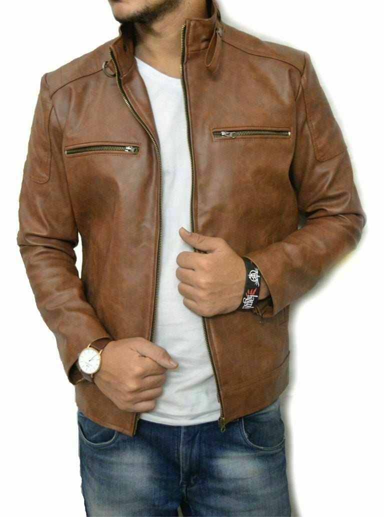 New Men's Original Lambskin Biker Brown Fashion Jacket with Zip
