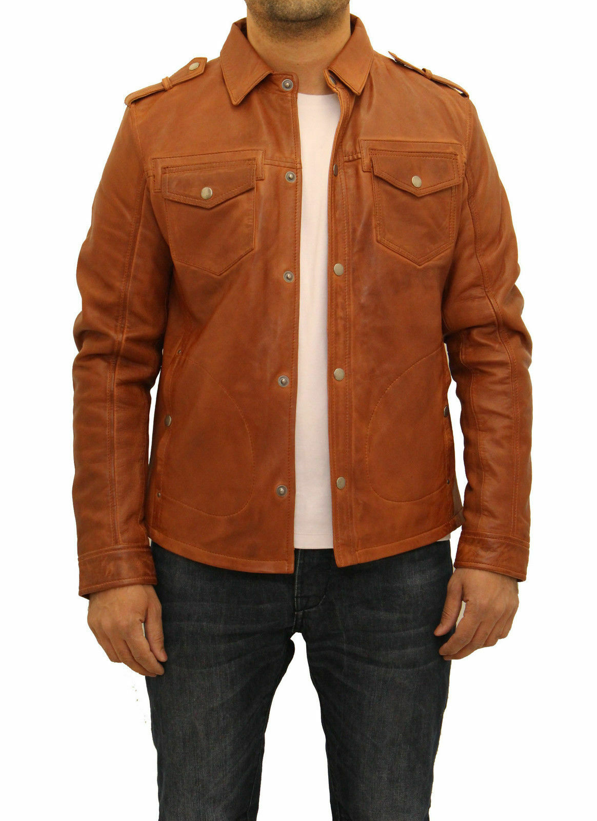 Men's Original Lambskin Shirt Long Sleeved Button Biker Motorcycle Jacket