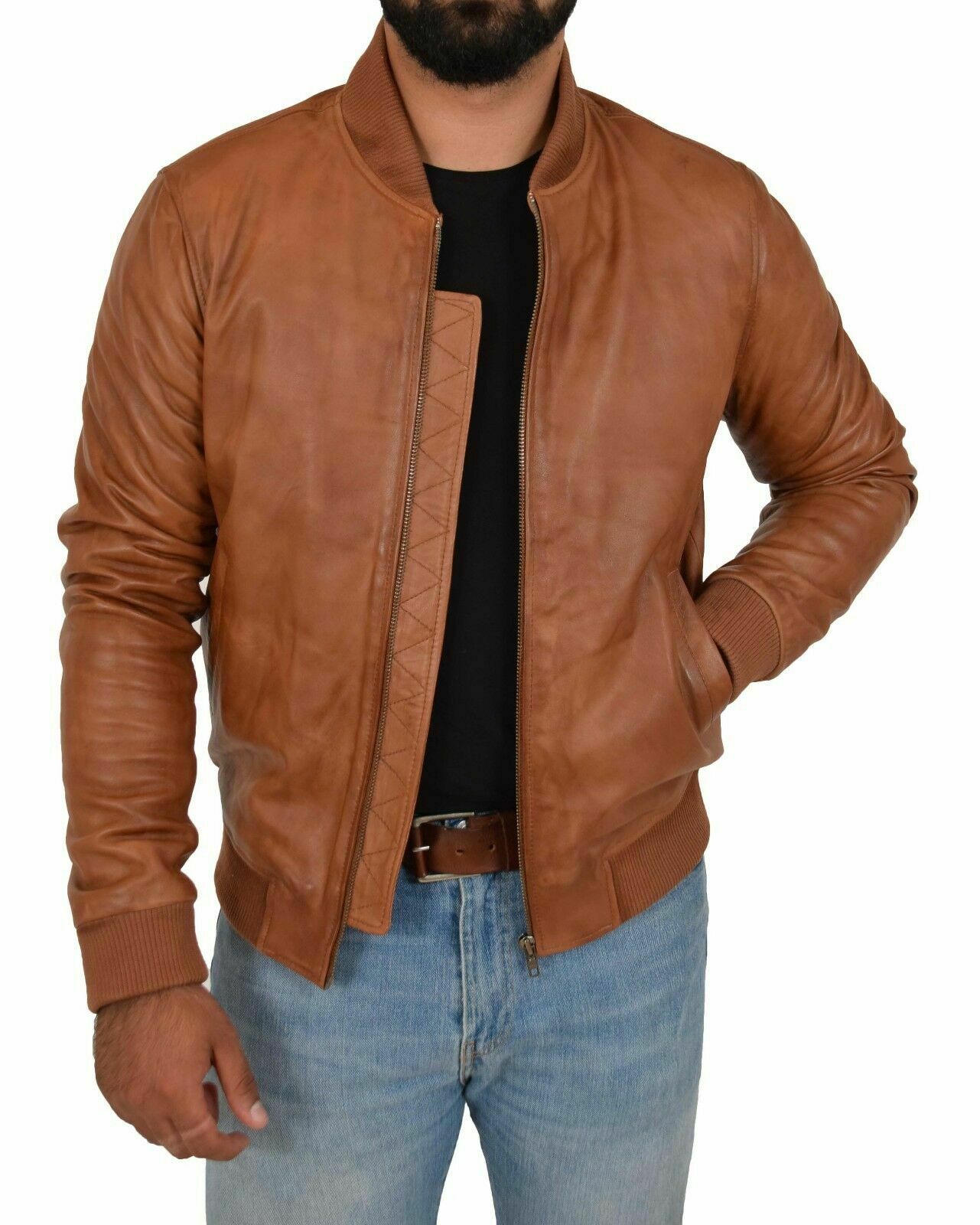 Urban Mens Sheepskin Jacket IN Real Biker Open Front Brownish