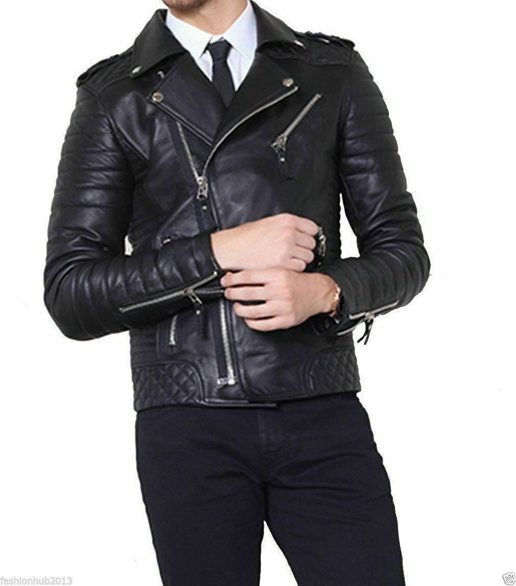Men's Real Lambskin Leather Biker Black Fashionable Zipper Jacket Motorcycle