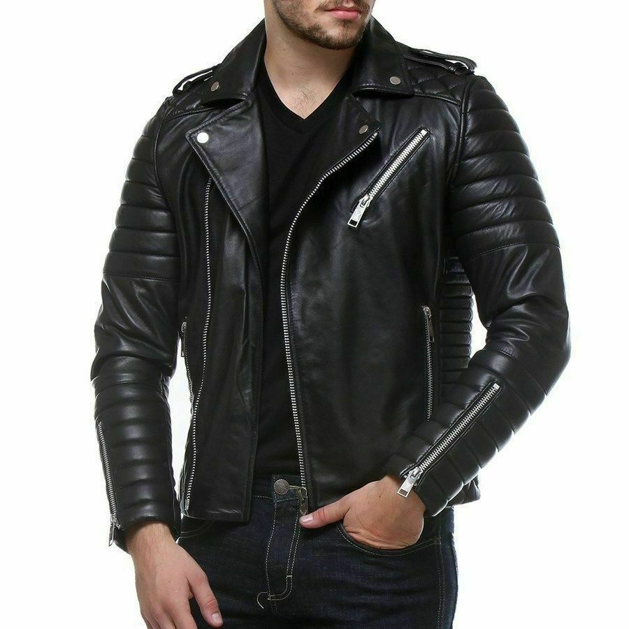 Men's Genuine Lambskin Leather Jacket Motorcycle Stylish Biker Black Jacket