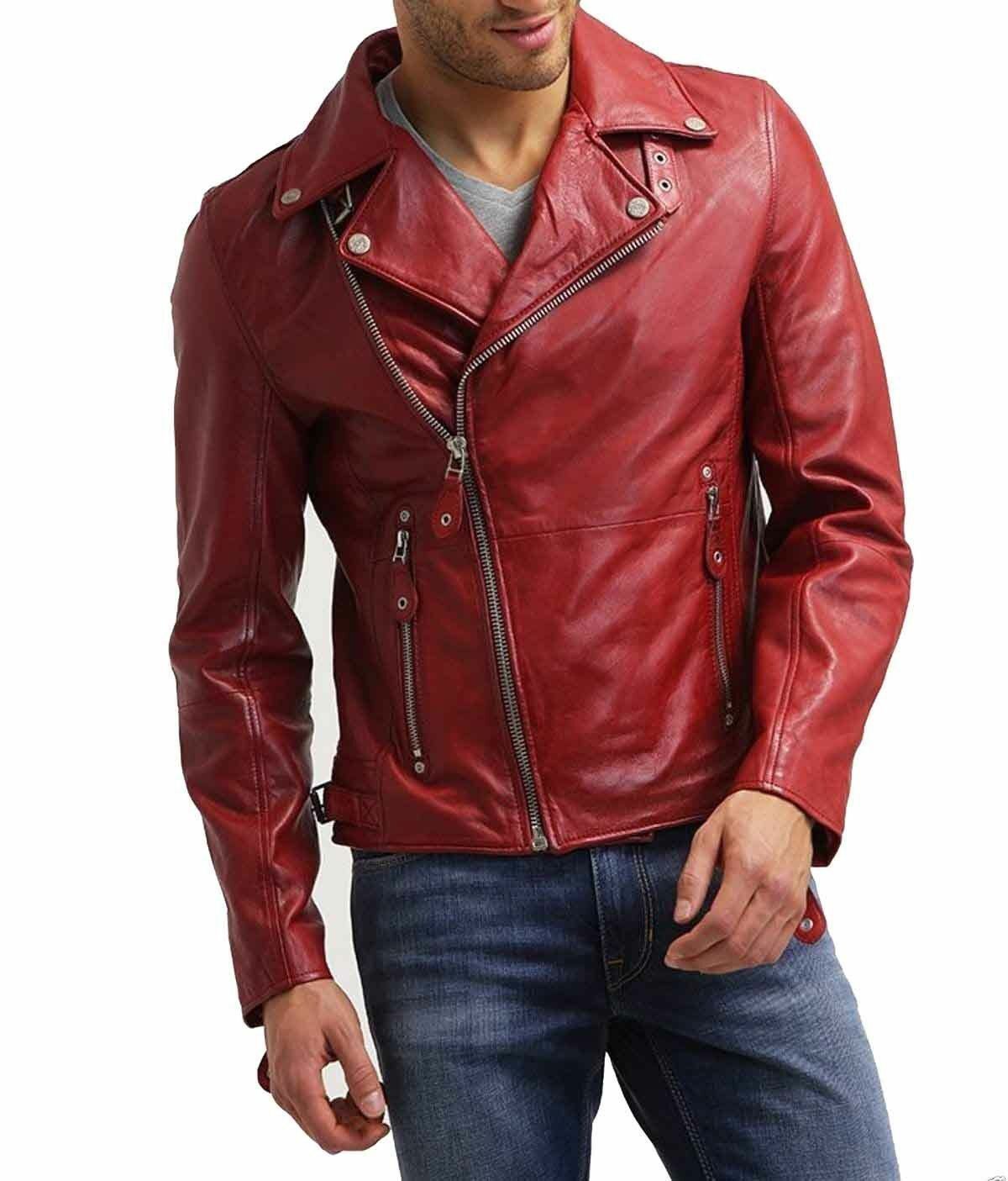 Men's Biker Motorcycle Genuine Leather Jacket Slim Fit Stylish Coat