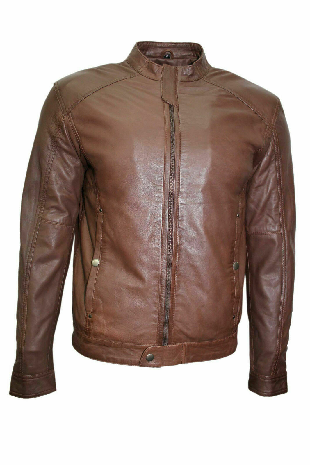 Mens Genuine Lambskin Authentic Leather Jacket Biker Motorcycle Basic Brown Coat