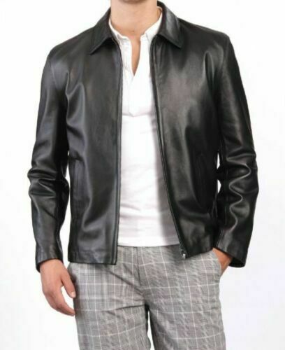 Men's real lamb leather real leather biker jacket motorcycle black classic jacket