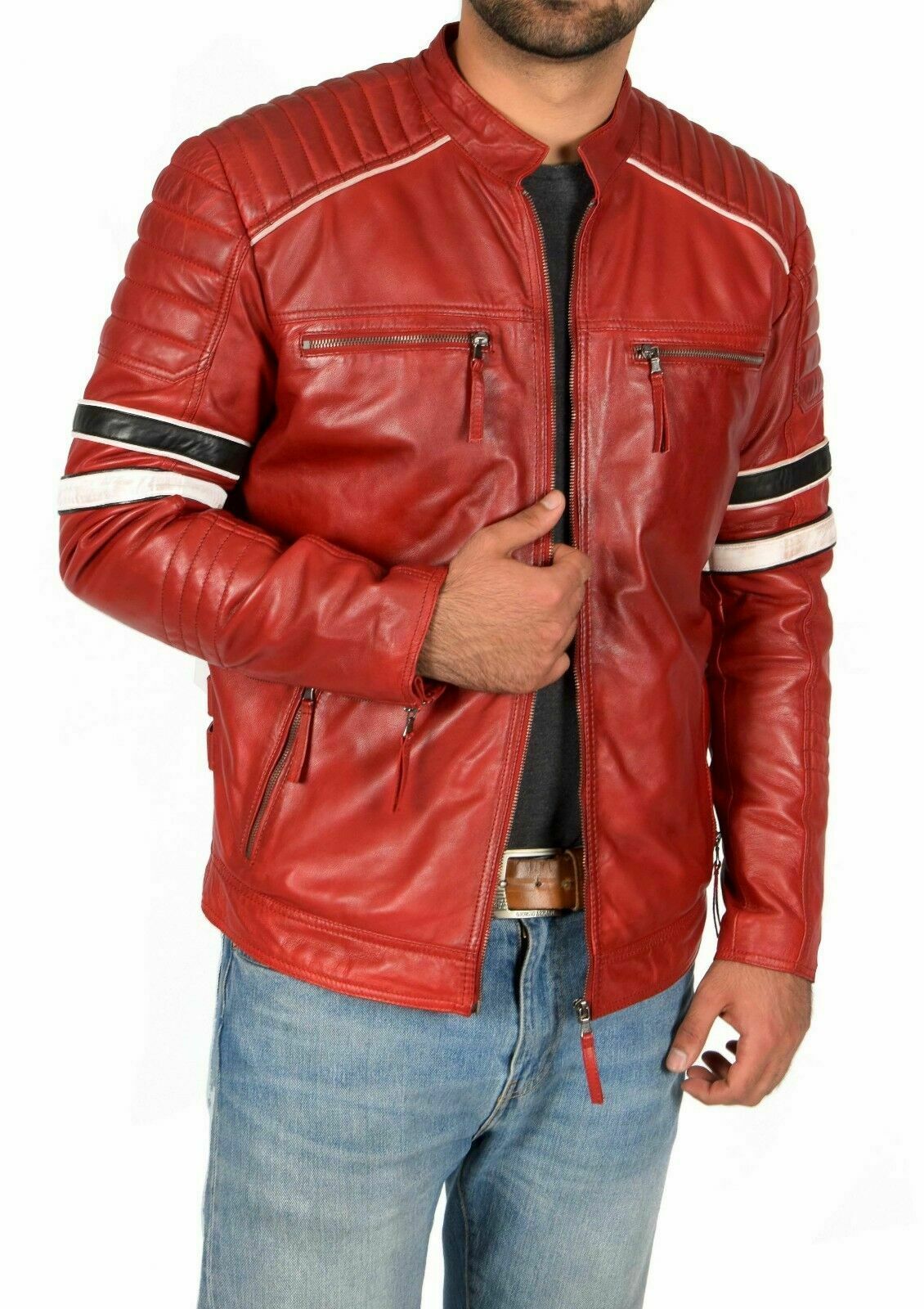 Men's Genuine Lambskin Handmade Leather Jacket Motorcycle Biker Stylish Red Coat