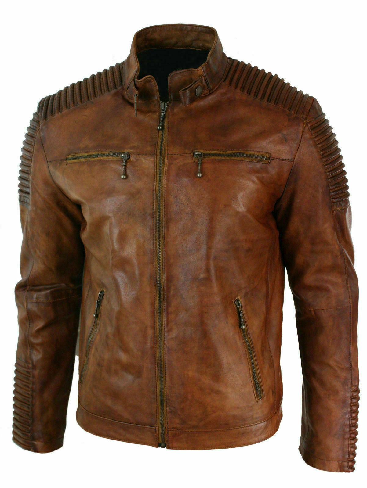 Men's Vintage Antique Leather Biker Jacket Motorcycle Cafe Racer Retro Antique