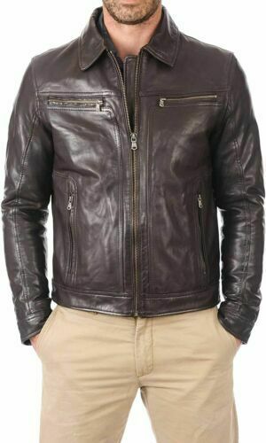 New Man Lambskin 100% Dark Brown Biker Jacket with Collar