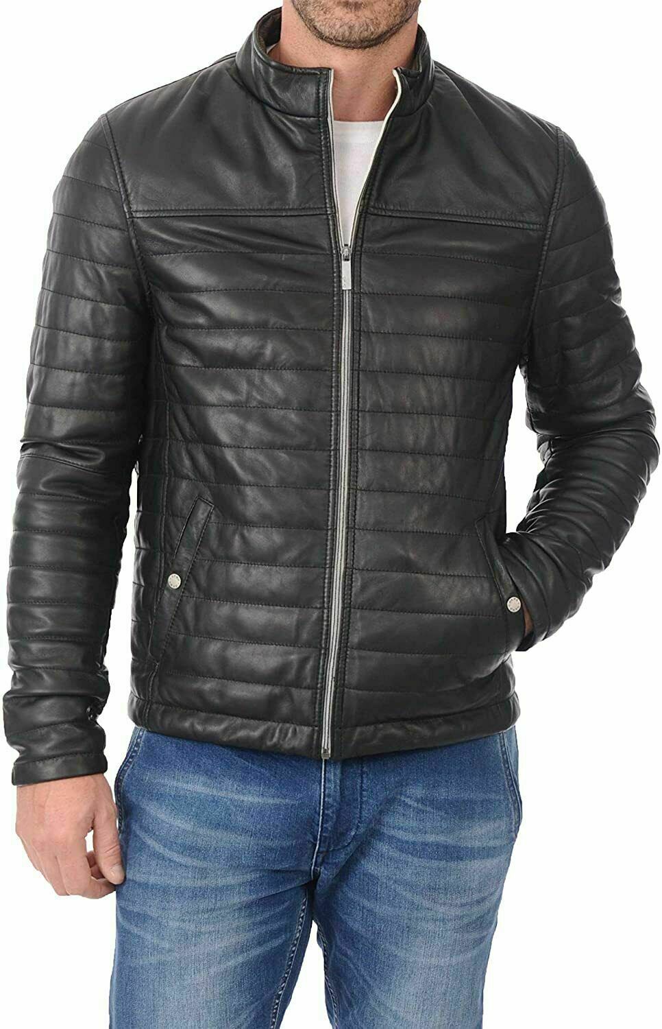 Men's Lambskin 100% Leather Jacket Motorcycle Biker Stylish Quilted Black Coat