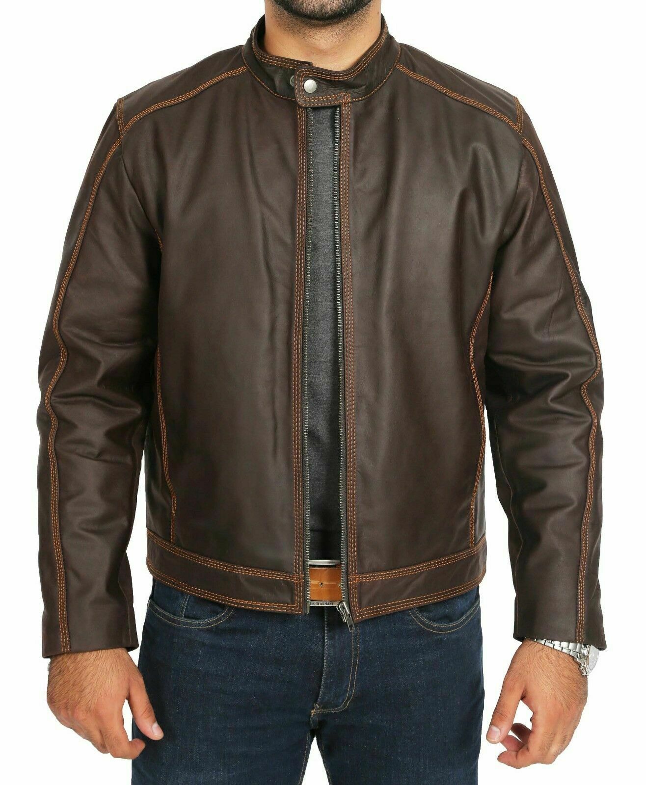 Classic Men's Genuine Lambskin 100% Leather Jacket Biker Motorcycle Brown Coat