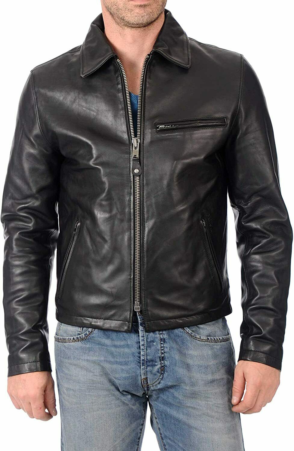Men's Genuine Sheepskin Leather Jacket Biker Soft Black Luxury Plain Party Wear