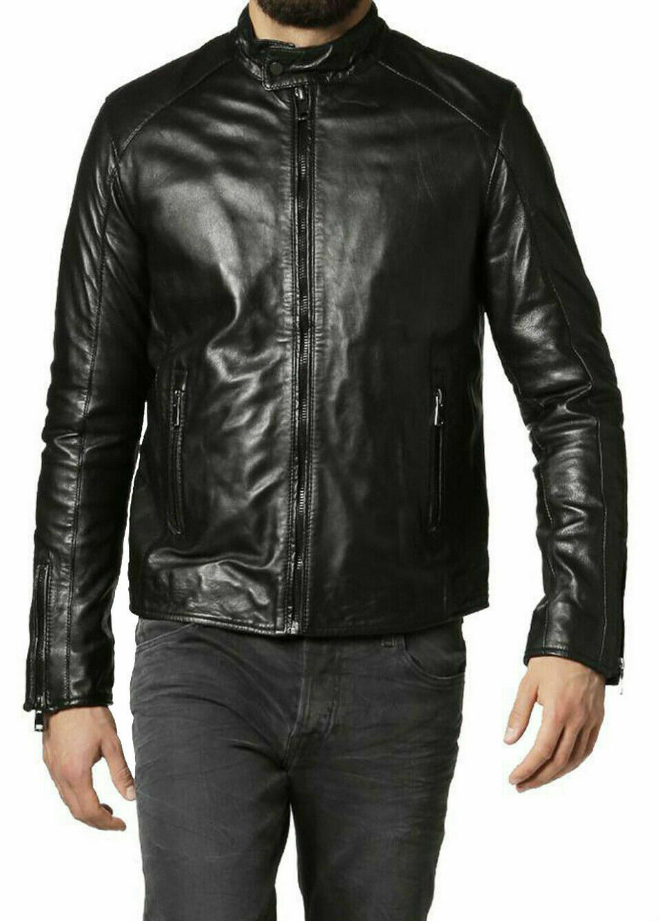 NEW Men's Genuine Cowhide 100% Real Leather Jacket Black Motorcycle Stylish Coat
